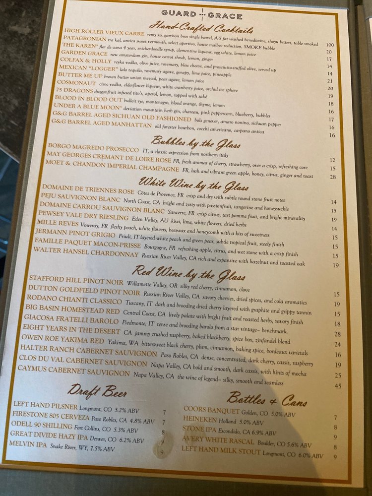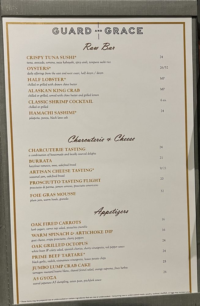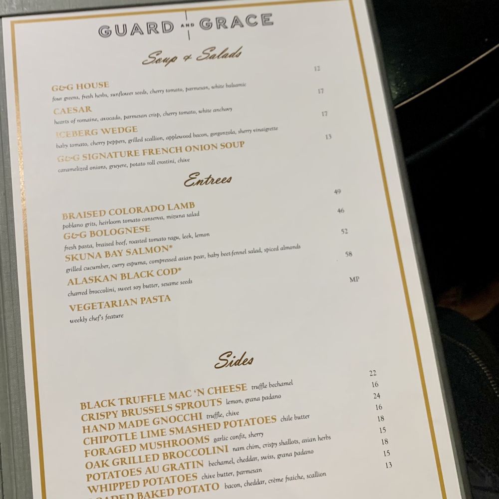 Guard and Grace Modern Steakhouse Menu (Update 2025)